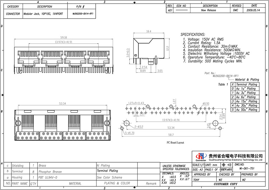 MJ562200-BX14-RF1 type 1X4 10P10C shielding foot front 3.05