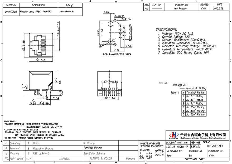 MJ88-BX11-JP1 180 degree with DIP shield H=12.9