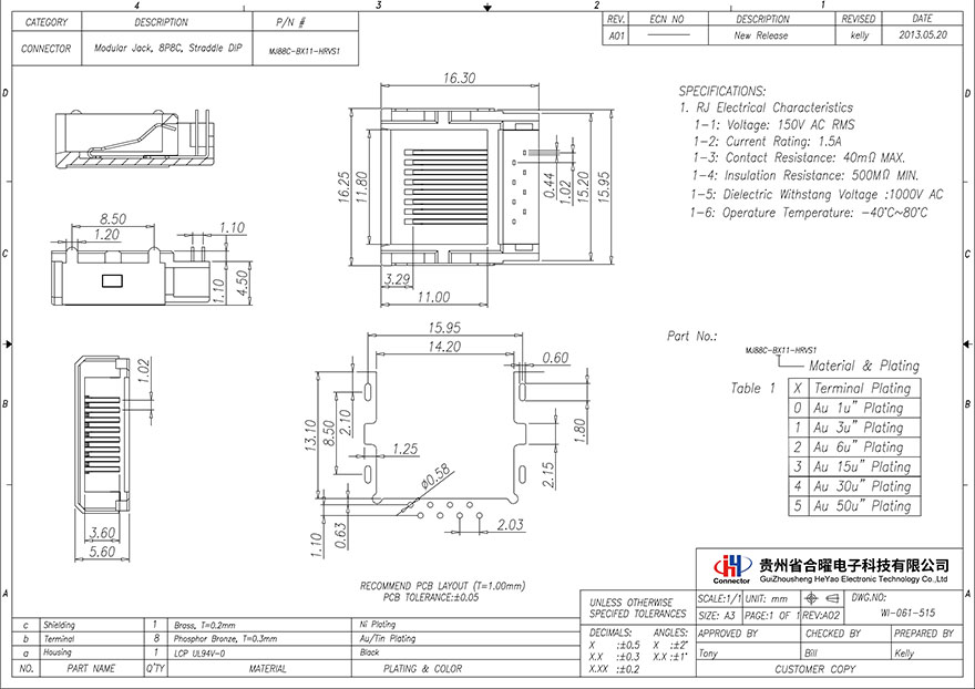MJ88C-BX11-HRVS1 RJ45 Half DIP