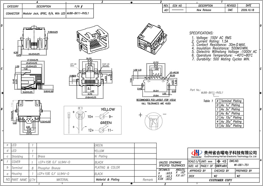 MJ88-BX11-RVSL1 sinking plate DIP with bullet and light (left green and right yellow)