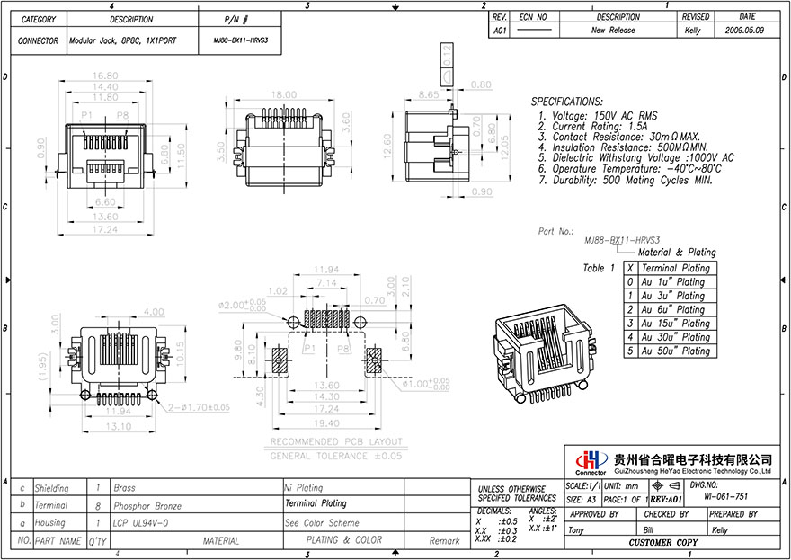 MJ88-BX11-HRVS3 sinking plate SMT middle package H=8.65