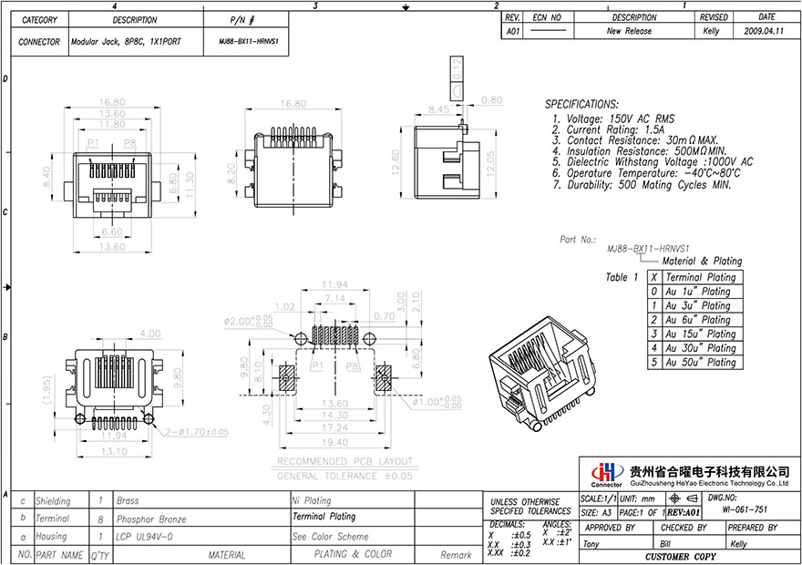 MJ88-BX11-HRNVS1 sinking plate SMT full plastic H=8.45
